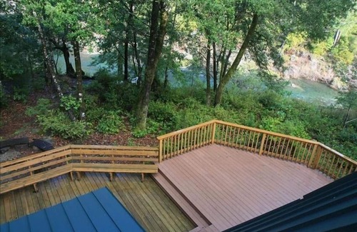 Relax in sun or shade on our large deck complete with nice furniture, or lounge on the edge of the river with an exquisite view of our beautiful swimming hole from the stone patio area. An amazing stone stairway winds down to a magnificent sandy beach, where you can sunbathe, wade or swim in the pristine waters of the Smith. The clear green water of this famous river will soothe your soul.