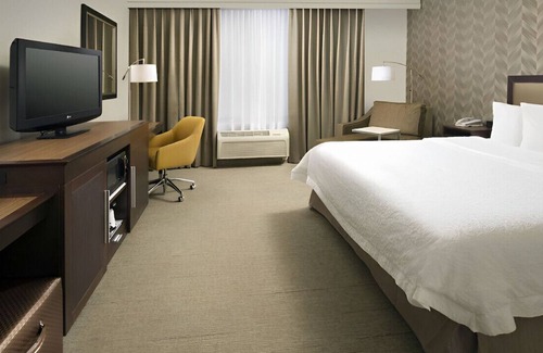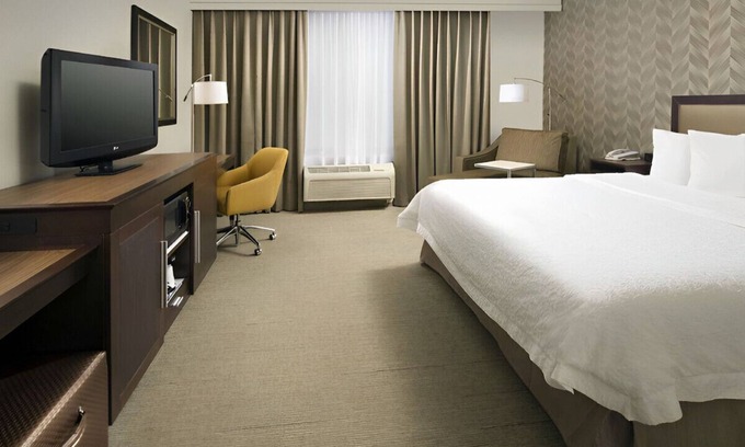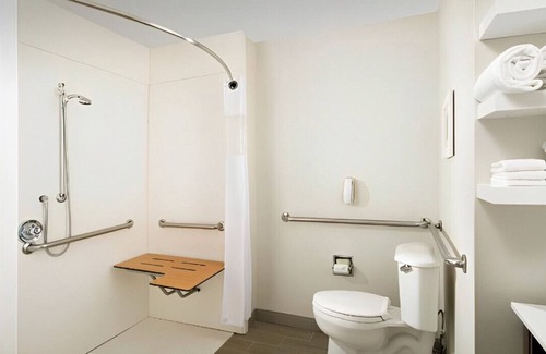 Unwind in your spacious room with our clean and fresh bed, a comfortable, easy chair with an ottoman, 32-inch HDTV, microwave, and mini-fridge. Refresh in the bathroom, which has a WaterPik showerhead and a curved shower rod that allows more light and space in the shower. The on-site convenience of the fitness facility and indoor pool are just two unique amenities that will make your stay more enjoyable. Miscellaneous fees may be subject to additional costs after booking.