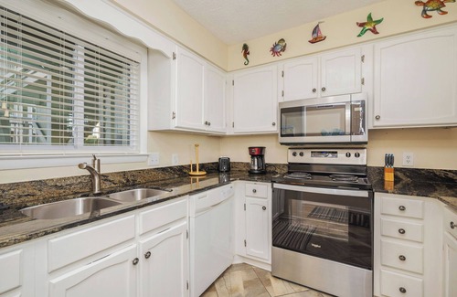 Enjoy high-speed optical fiber internet with WIFI, two flat panel high-definition Roku TVs, with a digital antenna available in the living room for local channels and a Sony PlayStation 3 in the master bedroom, a DVD/Blu-ray players, stereo for playing CD's/MP3's/AM/FM radio, board games, reading material, beach chairs, boogie boards and covered parking. These are just some of the wonderful amenities awaiting you on your beach getaway. The fully appointed kitchen includes granite countertops, an icemaker, garbage disposal, microwave oven and sink/faucet, which will make meal times convenient and enjoyable.