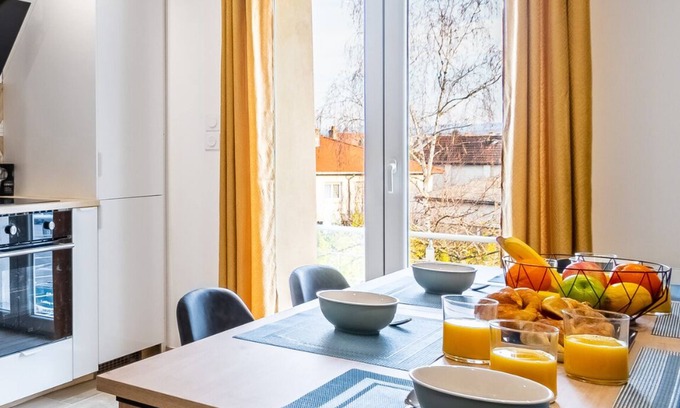 Best-rates for the Audincourt apartment starts from $204 per night with includes Parking, Security/Safety, Bedding/Linens, Wellness Facilities, Child Friendly, Internet, Laundry with all other amenities. Perfect for Weddings is committed to ensuring every guest experiences a comfortable and extraordinary stay, whether planning a romantic getaway, a honeymoon, a pet-friendly stay, or celebrating with the entire wedding party.