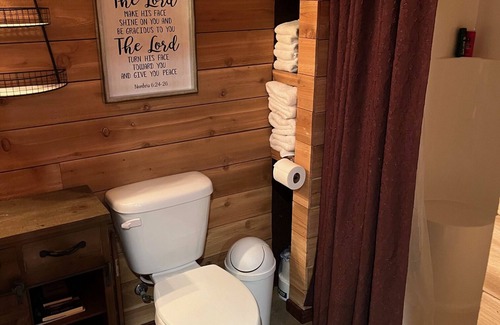 Built in 2020. This "bunkhouse" is attached to our shop in our backyard. The bunk bed is a full on top and a queen on the bottom. The top bunk has a bumper to keep kids from rolling off. A pack-n-play and a children's cot (the size of a crib mattress) is available. We also have two twin-size air mattresses available. Bedding is available for all bed options. Shower only, no bathtub. AC is a window unit, not central. Heat is an electric fireplace, not central. You will have access to a microwave, large toaster oven, and mini fridge.