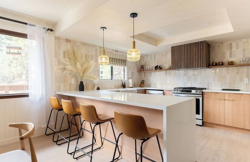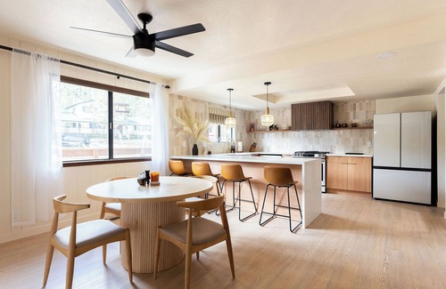 The interior features modern-style décor, and there are outdoor chairs in front of the house with a relaxing mountain view. It’s comfortable, relaxing, close to shopping areas, convenient, quiet, near Big Bear Lake, and close to the ski slopes— a perfect vacation home. Designer modern-style décor. Close to restaurants and supermarkets, the kitchen is fully equipped to meet all your culinary needs. There are relaxing chairs in front of the house for enjoying distant mountain views. The backyard features a swing, BBQ, and a spa for added privacy. Close to ski resorts, making it an ideal vacation choice.