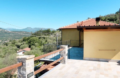 Marta 12 km from Albenga: 2-family house "A Ca' Gialla", surrounded by trees. In the hamlet Marta 12 km from the centre of Albenga, 5 km from the centre of Villanova d'Albenga, 12 km from the centre of Alassio, in an elevated position on a slope, 12 km from the sea, in the countryside. For shared use: small, well-kept garden 100 m2 with lawn and plants. Shop 4 km, supermarket 12 km, restaurant 4 km, bus stop 10.9 km, railway station "Albenga" 12.5 km, sandy beach "Alassio" 12 km, indoor swimming pool 10 km. Golf course (18 hole) 3 km. Nearby attractions: Acquapark 'Le Caravelle' 16 km. Please note: the owner lives in the same residence.