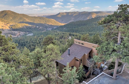 Escape above the clouds in this secluded cabin nestled on top of Lookout Mountain. Experience thousands of kaleidoscopic city lights, and an abundance of mountain peaks in one of nature's most breathtaking settings. Expansive windows and spacious walkout decks bring the outdoors in, offering natural light, fresh mountain air, and 180-degree panoramic views extending to the horizon. The nature intimate design allows guests to form a connection with the beauty, wildlife, and culture of Colorado!