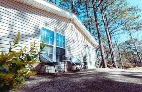 Super Comfortable & cozy. House includes stainless steel refrigerator, stove & coffee maker. Includes, Wi-fi, Netflix/ Prime/ firestick, hammock & year round fire pit. Access to huge 33,000 gallon salt water pool opened from May - October