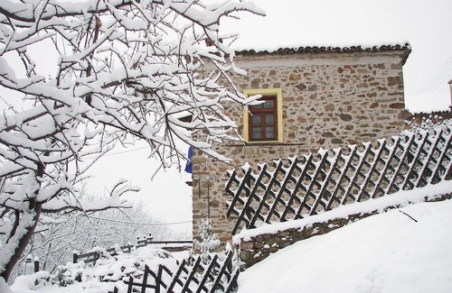 Vitsi Lodge is a very ancient stone village house on two levels brimming with character and restored with exceptionally high standard and total respect for its innate simplicity. This enchanting House is an architecturally significant house with a true country feel. With essential elements of traditional Northern Greek country style decor and traditional decorative motifs painted on vintage wooden panels and ceilings.