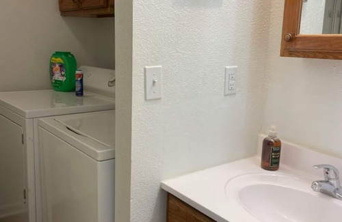 Not just a room, it’s a home! Close to shops and restaurants when you stay at this centrally-located gem. Condo 6 has 2-BR with a queen bed in each, futon that folds in the living room. Full bath and a washer and dryer, along with a full kitchen with all the essentials. While all smoking is prohibited, some noses may note a vintage tobacco smell from days gone by. The rate is adjusted affordably, and most enjoy their time in Condo 6! Just a short walk to the river and Main Street. Comfy stay!
