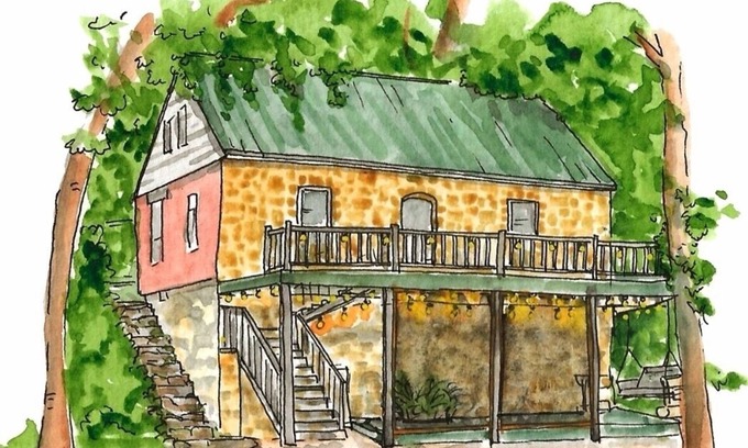 This is a charming historic 1860's cottage in the heart of Missouri Wine Country. Nestled in the green foliage & trees, right on the creek. Wildlife and nature abound. It’s one of a kind.