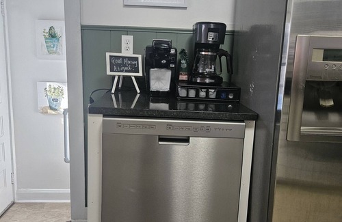 In the kitchen you will find granite counter tops and every tool you will need for your delicious meal preparation.