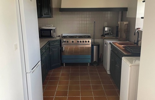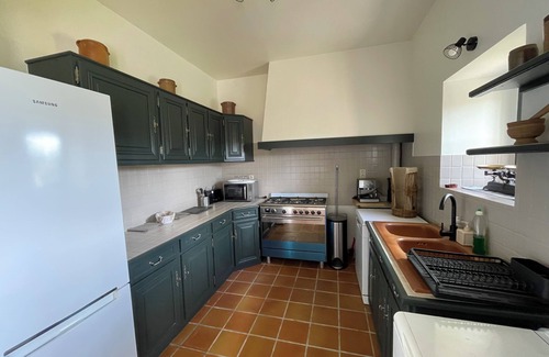- The fully-equipped fitted kitchen with washing machine, large SMEG gas stove with oven, microwave and dishwasher opens onto the terrace through a French window.