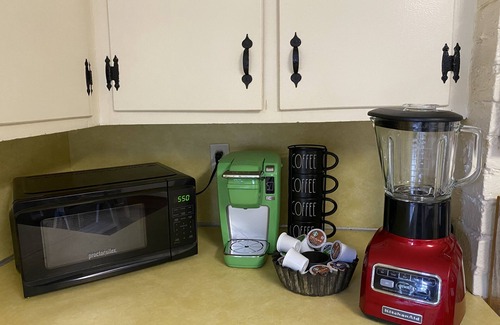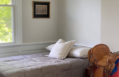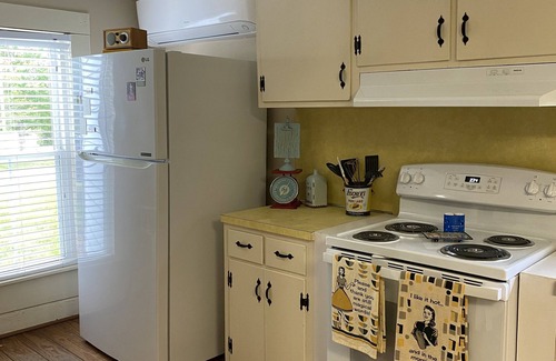 This home features plenty of parking for your car and boat, plenty of play space in the yard, a lovely front porch, living room, sitting room, kitchen, master bedroom, office space and full bath downstairs with two more bedrooms and full bath just up the grand staircase. Fully appointed kitchen with microwave, Keurig coffee maker, KitchenAid mixer, air fryer, electric stove, refrigerator w/ ice maker, Dyson stick vac, washer and dryer. Internet and TVs up and down with Roku. We have furnished the home with antiques, rescued pieces from family collections and some things new and modern. Eclectic and earthy, you cannot help but feel the easy spirit of this old home when you walk through the door.