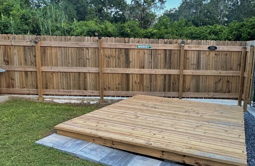 Clothes Free enviroment Tent site, must bring tent, to set on 9'x9' Platform Only. 110v 15 amp Outlet, No water on camp site. Bring cooler, drinks, food and enjoy. Gazebo, Outdoor shower, Toilet, hot tub, Gazebo and patio furniture. Quiet, relaxing, No Children. No smoking, vaping, or e-cigarettes on property, No Pets. 2 Adult Max. Nearby Beautiful downtown Ocala, World Equestrian Center WEC 5 minute away, Florida Aquatic Swim Training Ctr, Rainbow Springs, Silver Springs, Zip Line, and tubing.