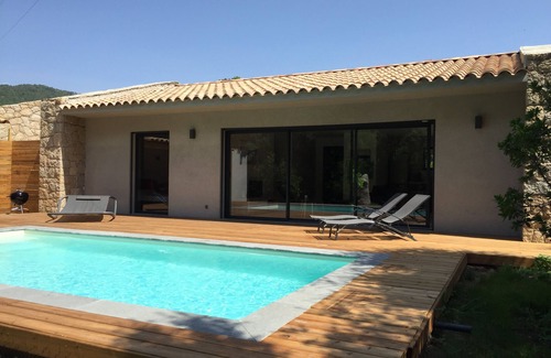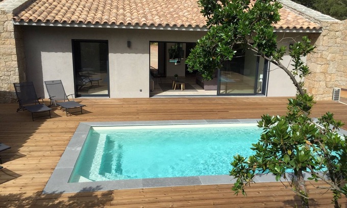 In the heart of the village of Lecci, in a quiet environment, new villa composed of 2 bedrooms each with its bathroom and air conditioning.