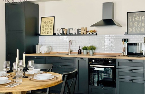- living area with fully equipped kitchen (dishwasher, induction hob, oven, microwave, kettle, Nespresso coffee machine, dishes...)