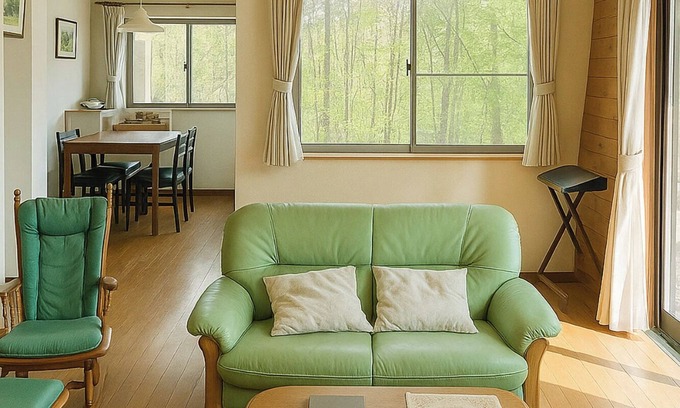 Why not enjoy a private holiday with your family or a group in a quiet rental cottage surrounded by forest The spacious grounds are equipped with a balcony where you can relax without worrying about the surroundings where you can hear the chirping of birds The room is wrapped in the warmth of wood creating a relaxing space with a nostalgic feel