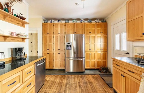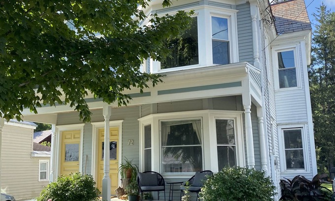 This dog-friendly Victorian Lovely is nestled in the valleys intersecting the upstate woodlands and those famous Vermont maples. Two bedrooms-- one queen and one twin make it perfect for couples, small families or groups of friends. Outside you'll enjoy a lovely, shared, half-acre green with colorful flower beds, outdoor dining and fire pits, and a babbling brook.