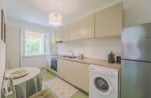 The apartment is on the first floor of the house, immersed in a large garden, with direct access to the beach (100 mt). The village with shops and services is only 5 minutes’ walk. One parking space is available.