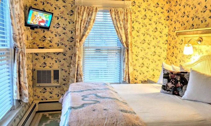 DEYETT is a cozy double occupancy Queen room. It is located on the 2nd floor of the Main Inn (must use stairs) and overlooks our garden and backyard. 108 sq.ft private bathroom, a TV with premium Comcast Xfinity cable channels and HDMI/USB ports, pet-free, *no* mini-fridge. Adults (18+) only, max. occupancy 2.