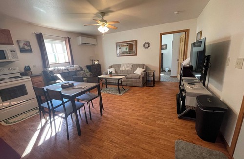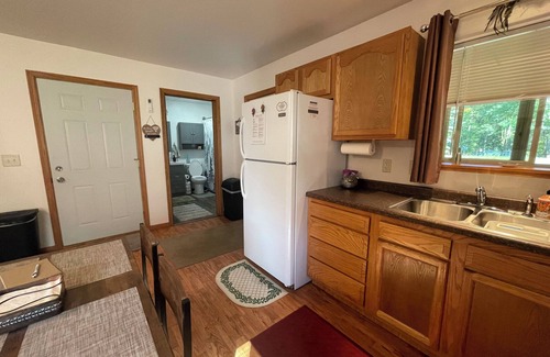 Discover tranquility at Golden Pond Rentals in Central Wisconsin. Our centrally located Cabin rental offers 1 bedroom, a living room with a sofa sleeper, a full kitchen, and full bathroom with laundry services. Everything is provided for your convenience.