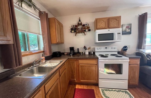 Welcome to your charming cabin retreat with a picturesque pond view! This furnished short-term rental offers easy access, all on one floor, with no steps required to enter.