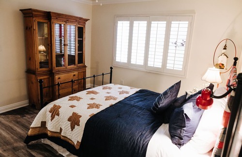 Experience the tranquility of our charming Cozy Cottage, a detached 1-bedroom suite that boasts a queen-sized bed in the bedroom. Additionally, the living area features two inviting recliners that open up, making it possible for smaller individuals or children to sleep comfortably, accommodating a total of three adults. Alternatively, it also includes a plush queen air mattress, if you so desire.