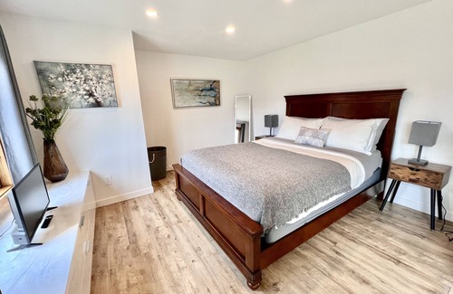 The guest suite is located on its own private level of an occupied house. The suite is an open concept with cozy and modern design. The entire suite has a custom cedar finishings, hardwood floors, a large rainforest shower overlooking the ocean side, a kitchenette, a BBQ outside on its own private patio. This modern suite is a true west coast experience.