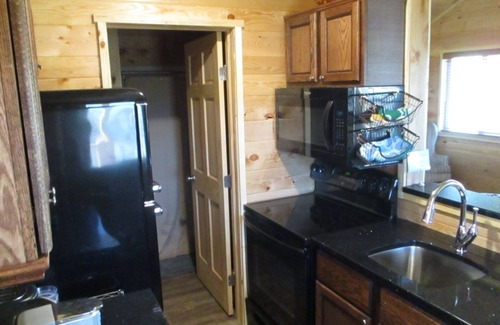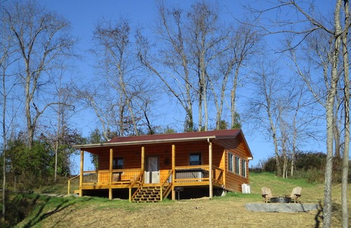 The Dale and Marguerite cabin is a 1 story layout named after my grandparents. Dale grew up on this farm (in the yellow farmhouse). The cabin overlooks a creek, and our guests are able to sit on the porch, or in the hot tub, and see a variety of wildlife and foliage. Guests can also walk the property. A clear night is breathtaking due to the rural area making stars vivid. There is one bedroom with a king size bed, and a full kitchen with pans and utensils. There are 2 TV's ( living room and bedroom) , DVD, and DISH Network. Bed linens and towels are provided. There is a 2 zone heating/A/C system providing separate thermostats in the living room and bedroom.