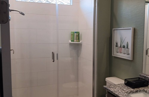 Your cozy getaway awaits in Queen Creek. You'll find a serene space to relax and unwind in this one bedroom unit. The property is located in the center of town with grocery stores and eateries in walking distance. Fat Cats, Pecan Lake,Schnepf farms and the Olive mill are a 10 min ride away . Enjoy the convenience of amenities like AC, heating, washing machine and dryer, free WiFi, Hulu and Netflix. The bathroom is well-equipped for your needs. Blow dryer, shampoo and conditioner. The bedroom has a flash light, sewing kit and a sound machine, The laundry room comes with laundry soap and dryer sheets , towels, wash clothes and make up remover towels . The kitchenette has a full working kitchen. There are plenty of games on the book case to choose from. This unit also comes with a private gate and a security door.