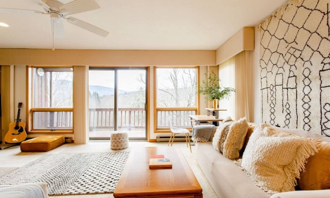 A serene Catskills 2-bedroom condo, 10 minutes to Hunter and Windham mountain ski resorts. Ideal for ski enthusiasts, it has an indoor wood-burning fireplace, ski gear locker, and free coffee & tea to warm up after skiing. Perfect for remote working nomads, enjoy the tranquility while being close to prime ski destinations.