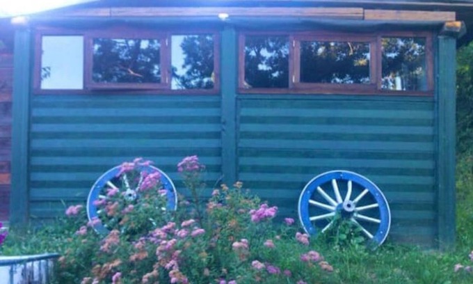 The Boho Bunker is a rustic glamping shed in the Italian mountains near Bologna, Modena and Parma. The cabin is a romantic retreat for 2, has a pergola with barbecue and a shared swimming pool, and outdoor bath.