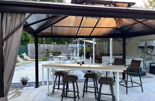A Cute Place Clothing Optional Clothes Free enviroment with a Private Outside Entrance. 1 Adult Only. Single bed, 1/2 Bathroom shower, toilet & closet, Kitchen sink & countertop, Microwave, NO stove, small refrig, twin bed, Smart TV, WiFi, AC/Heat. Non Smoker, No Pets. CoinOp W/D, Outdoor shower, Toilet, hot tub, Gazebo and patio furniture. Quiet and relaxing, No Children. Nearby Downtown Ocala, World Equestrian Center, Florida Aquatic Swim Training, Aquatic Center Ocala, Rainbow, and Silver Springs, Canyons Zip Line, & tubing.