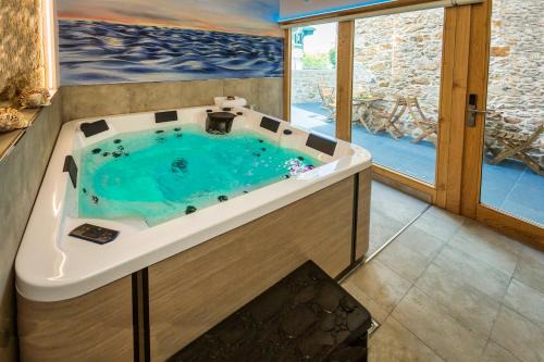 19 miles from Ezaro Waterfall in Muxia, A de Lucía offers accommodations with access to a hot tub and spa facilities. The guest house features rooms with air conditioning, free private parking, and free Wifi. At the guest house, every unit is fitted with a wardrobe, a flat-screen TV, a private bathroom, bed linen, and towels. The rooms are equipped with heating facilities. A selection of options including local specialities, fruit, and juice are available for the continental breakfast. Guests can also relax in the garden or on the sun terrace. Santiago de Compostela Airport is 49 miles from the property.
