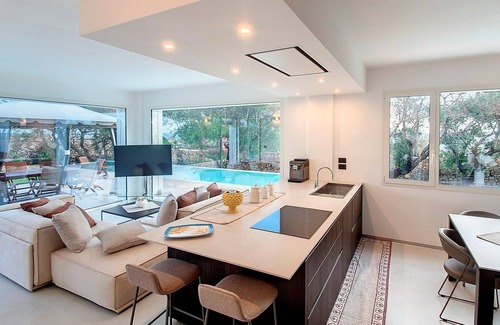 Enjoy a superlative stay here and an experience that you will remember for a long time! The villa is furnished to a very high standard - from the very comfortable beds to the kitchen with its branded appliances and the designer bathrooms, where every detail is well thought (have a look at the pictures!). The modern air conditioning, the photovoltaic system on the roof and the perfect thermal insulation make this house a technological and ecological highlight.