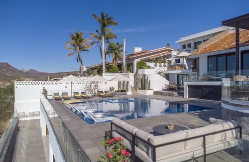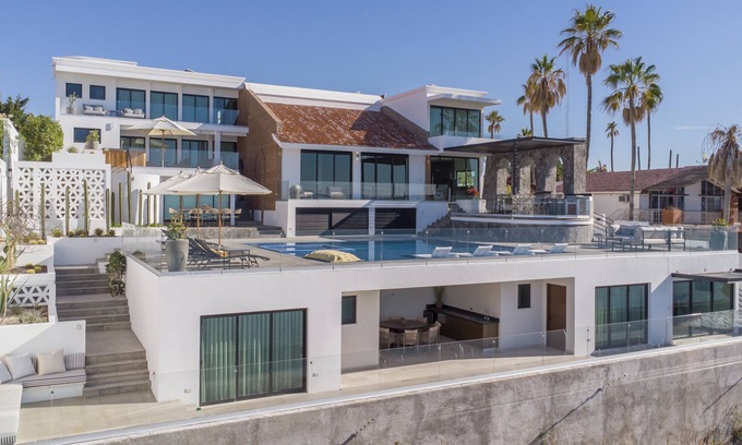 Luxurious, huge, beautiful and completely renovated Villa Palmares is located on a small hill overlooking the Sea of Cortes, inside a gated community with security and surveillance 24/7.