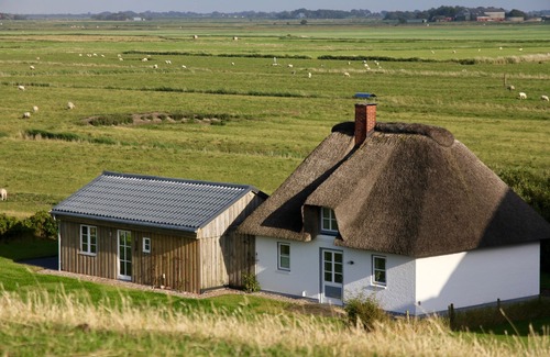 In the reed-covered holiday home Seegut you can go on holiday at any time of the year: in the spring, when the lambs are born and the sun warms the face of the dykes for the first time. In the summer you can enjoy a holiday in the Westerhever / Stufhusen with a bath in the North Sea - quiet, relaxing and yet not far from the many attractions of Eiderstedt. In the autumn when the nuns and ruffed geese land on the salt meadows and the autumn sun dives the country into the most beautiful colors. In winter, when it storms and sometimes snows, the wind pushes the spray to the dyke and the cozy house welcomes you with warmth.