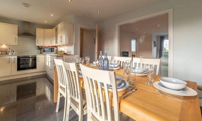 Beautifully presented throughout, this light and airy holiday home features up-side-down living. The first floor features a delightful balcony which overlooks the garden and sea beyond; this is accessed via the lovely dining room where everyone can gather round the large table and enjoy family feasts. Whip up lazy breakfasts or wonderful home-made delights in the well-equipped kitchen; and with the handy dishwasher you will find clean up a breeze. After long days at the beach, come home and relax in the cosy sitting room; the sofa can transform into a handy double bed allowing groups of up to ten guests to enjoy a holiday together.
