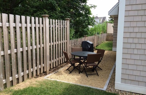 This one-bedroom that sleeps four is stunning! 17' ceilings, central air, 2-car parking! This cottage has an open breezy living space, a modern (gas range, microwave, stainless steel appliances, granite countertops) fully appointed and applianced (everything from a crockpot to a submersible blender) kitchen, a cozy gas fireplace, a top of the line comfy queen bed, a memory foam pullout and a relaxed comfortable outside dining area complete with a gas grill. Although you are away, stay connected with wi-fi and streaming music and video through the flat screen. The island has everything you need. However, if you must head off island, city amenities abound in Newburyport, which include shopping, farm to table restaurants, bars with live music, performing art centers, free concerts and much more.