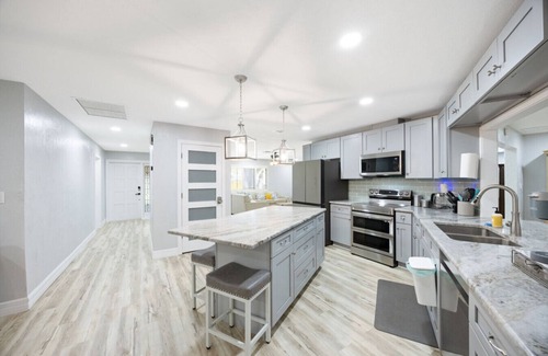 Based on the information received from our partner, the Fort Myers Shores house has not specified they are wheelchair accessible. Likewise, there is not an elevator specified as being available at the property. Specific accessibility details may be addressed in the property details section of this page.