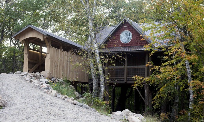 The tree house sits 18 feet off the ground on a ridge over looking Rock Lake. Its surrounded by our 50 acres and 500 acres of state land, we enjoy a lot of wildlife, peace and quiet here. Throughout the land there are a lot of trails for walking, snowshoeing, and cross country skiing. In the summer you can enjoy paddle boating and kayaking.