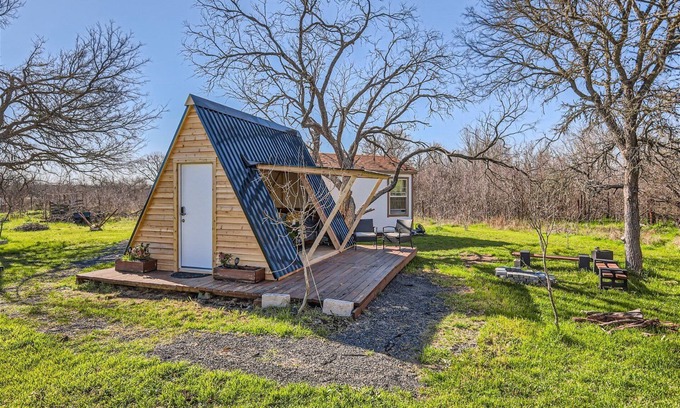 Escape to our A-Frame cabin on 5 acres, a peaceful hideaway just 20 mins from downtown Austin. Experience countryside living. This will be a wonderful place for a solo trip or a trip for 2. With a private firepit and place to BBQ.