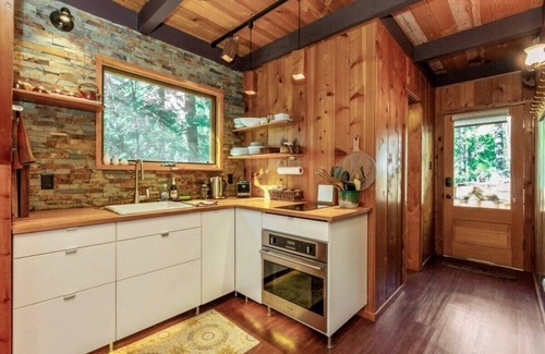The kitchen is stocked with essentials. Please see the guestbook on how to use the stove. A Quick Kitchen Tip: We do our best to keep basics like ziplock bags, tin foil, and plastic wrap stocked for your convenience. However, since these items sometimes get taken on outdoor adventures and don’t always make it back, supplies can run low. We recommend bringing some extras along just in case — it’s always handy to have on hand during your stay!