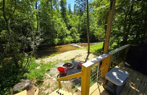 We have 2 other glamping sites available to rent in the glamping area. Each is private, on the creek, separated by 150 feet of woods and a full size cabin (400 yards away upcreek).