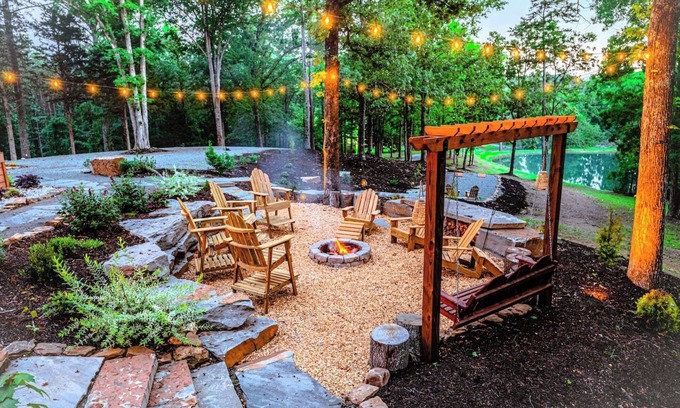 This spacious retreat comfortably accommodates up to 10 guests and boasts three well-appointed bedrooms, including a king bed and two queen beds, ensuring ample space for your wedding party. Each room features a private entrance, and you'll find modern conveniences throughout, such as two full baths with luxurious rain showers and a clawfoot tub for relaxation. The expansive deck is perfect for hosting pre-wedding gatherings while the cozy fire pit area invites you to unwind under the stars, making the A-Frame Retreat a delightful home away from home.
