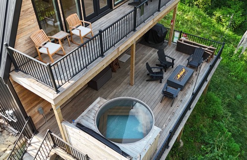 - A-Frame Riverside Luxury: Hot Tub, Sauna, Arcade & Views!