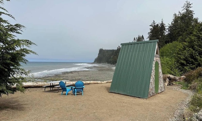Whiskey Creek Beach NW has exquisite views of the Straight of Juan De Fuca. This unique camp shelter is situated right above the beautiful pebble beach with incredible views of the Canadian Cascades and Mt. Baker. *note: Designated parking at the site, please see map for details.