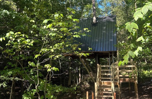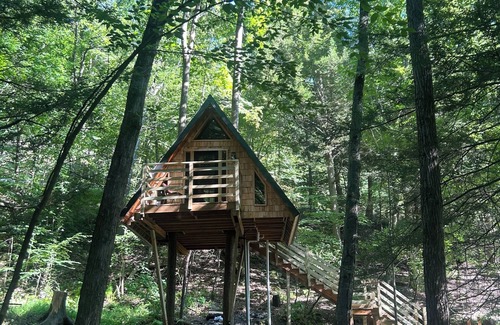 Welcome to our beautiful A-frame treehouse, offering a unique camping experience. Immerse yourself in the soothing sounds of nature and enjoy wildlife views just a few feet from your property.