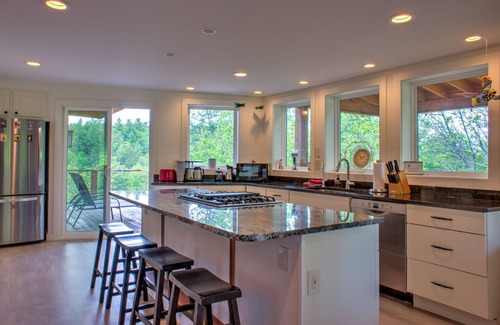 At Trail Time, you’ll find an array of luxurious amenities tailored to enhance your wedding experience. The home features five spacious bedrooms, which include multiple bedding options, ensuring comfort for all your guests. Enjoy two fully equipped kitchens, indoor games like foosball and ping pong, and outdoor spaces that invite relaxation, including a hot tub and fire pit for cozy evenings under the stars. The upper deck boasts breathtaking sunset views, making it an ideal location for pre-wedding gatherings or intimate ceremonies surrounded by serene mountain landscapes.