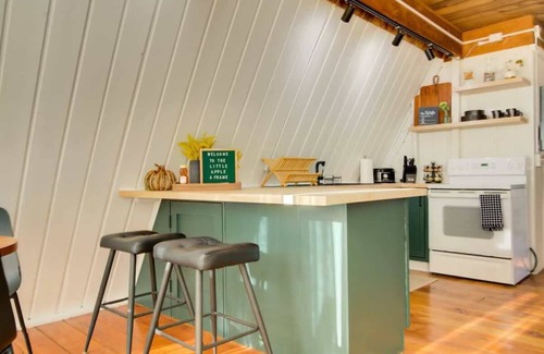 Come and enjoy a stay by the lake where you can disengage from the real world for a bit and take pleasure in time with family or friends at Little Apple A-Frame!