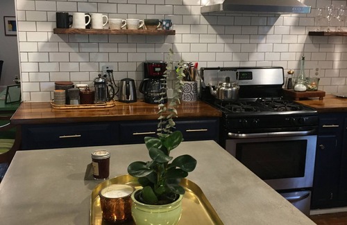 This serene home on a half-acre offers a haven away from the city for those needing a place to pause, nest, and rest. Sip tea on one of three porches, sit under the grand oak tree, and enjoy the heart-of-pine wood floors, modern kitchen, upstairs bedroom suite, ultra-comfortable beds, and all the conveniences for an easeful stay. Located in the tiny, charming town of Bynum, this one-of-a-kind house offers the chance to reset, with nature trails and the Haw River just outside the front door.