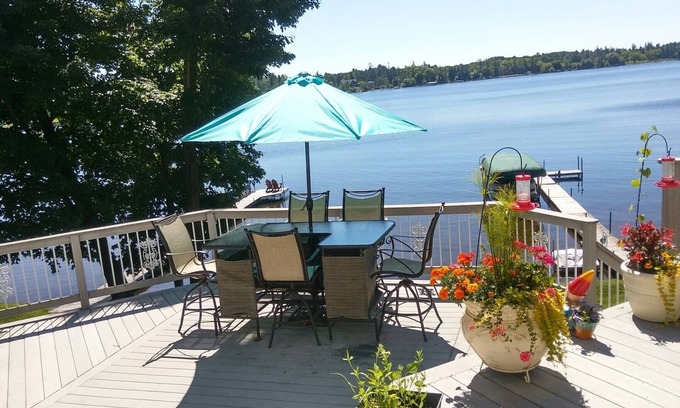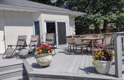The rental includes a Sauna with direct access to a 30X40 two tier deck overlooking the lake and beach. There are also two additional sliding glass doors to help access the deck and grill. A paddle boat , two kayaks and canoe are available along with life jackets, free of charge as part of your stay. Watch the morning sunrise while enjoying a cup of coffee on the deck or relax in the "cabin room" with a warm fire while you read, watch tv or just "veg" with friends and family.